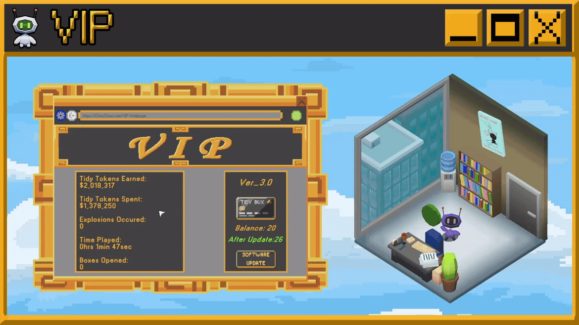 Teeny Tidy is an idle game where a little robot cleans your room whilst you work, focus, or relax. Customize the room with countless options, with different aspects of customization.