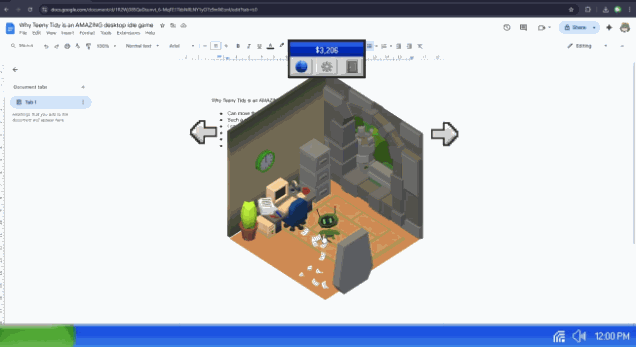 Teeny Tidy is an idle game where a little robot cleans your room whilst you work, focus, or relax. Customize the room with countless options, with different aspects of customization.